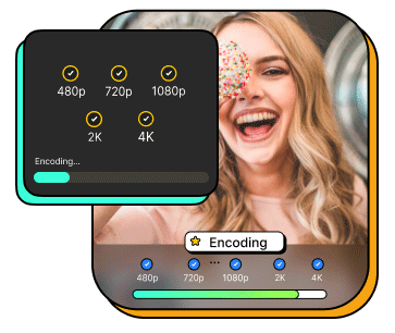 It is the process of converting a raw video file into a compatible, compressed, and efficient digital format that is capable of distribution across different screen sizes and resolutions. Encoding converts the file to play seamlessly on multiple screen sizes and auto-detects a resolution based on device and net speed. Learn More-->