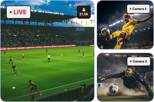 Deliver an immersive viewing experience by simplifying the broadcasting of sports events from cameras, stadiums, and third-party TV feeds — all in real time.